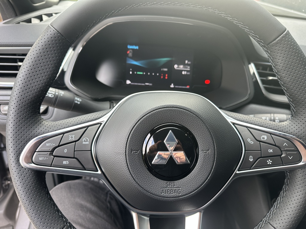 6 repreduktorov, Nabíjací vstup USB-C v zadnej časti stredovej konzoly (x2), Ovládanie audiosystému pod volantom, Plne digitálny prístrojový panel so 7" TFT displejom, Automatické aktualizácie audiosystému, Komunikácia s vozidlom a ovládanie niektorých jeho funkcií prostredníctvom mobilnej aplikácie My Mitsubishi, Bezdrôtové nabíjanie mobilného telefónu, Tlačidlo pre núdzové privolanie pomoci (E-Call), Dátový a nabíjací vstup USB-C na prednom paneli (x2), Audiosystém 10,4", podpora bezdrôtového Android Auto™ a CarPlay®, Bluetooth®, autorádio AM/FM/DAB (SDA), Aktívny systém pre núdzové udržanie v jazdnom pruhu (ELKA), Asistent rozjazdu do kopca (HSA), Výškovo nastaviteľné horné úchyty bezpečnostných pásov predných sedadiel (x2), Systém sledovania dopravnej situácie za vozidlom pri cúvaní (RCTA), Asistent pre bezpečné opustenie vozidla, 3-bodové bezpečnostné pásy ELR zadných sedadiel (x3) s predpínačom a obmedzovačom záťaže (x2), Núdzový brzdový asistent (EBA), Systém sledovania mŕtveho uhla (BSW), Systém rozpoznávania dopravných značiek upravujúcich rýchlosť (TSR) s inteligentným asistentom pre dodržanie povolenej rýchlosti, Aktívny systém udržiania v jazdnom pruhu (LKA), Detská poistka zámkov zadných dverí, Systém signalizácie núdzového brzdenia (ESS), Elektronický imobilizér, Čelné airbagy vodiča a spolujazdca (x2), spínač deaktivácie airbagu spolujazdca, Systém kontroly tlaku v pneumatikách (TPMS), Antiblokovací brzdový systém (ABS), Bočné airbagy vodiča a spolujazdca (x2), hlavové (okenné) airbagy vpredu a vzadu (x2), Systém pre analýzu pozornosti vodiča, Elektronický systém rozdelenia brzdného účinku (EBD), Systém predchádzania a zmierňovania následkov čelného nárazu s detekciou chodcov a cyklistov (FCM), Systém monitorovania a podpory udržiavania jazdného pruhu (LDW), Systém aktívneho riadenia stability (ASC), Multikolizná brzda, Lepiaca sada na opravu pneumatík, Systém elektronického riadenia trakcie (TCL), 3-bodové bezpečnostné pásy ELR predných sedadiel s predpínačom a obmedzovačom záťaže (x2), Technológia pohonu mild-hybrid 12V, Zatmavené zadné bočné okná a zatmavené zadné okno, Plastové lemy blatníkov (čierne), Zadný strešný spojler, Lesklo čierna mriežka chladiča s chrómovými akcentmi, Parkovacia kamera vzadu s projekciou na displej audiosystému, Kľučky dverí vo farbe karosérie, Parkovacie senzory vpredu, vzadu a na bočnej strane (x12), Spodný kryt predného nárazníka lesklo čierny, Disky kolies z ľahkých zliatin 18" čiernostrieborné + pneumatiky 215/55 R18, Ochranné spodné lemy dverí čierne, Strešná anténa typu Shark fin, Elektricky ovládané, vyhrievané a sklopné vonkajšie spätné zrkadlá v lesklej čiernej farbe s integrovanými indikátormi zmenu smeru jazdy, Tónované okná, predné sklo bezpečnostné laminované, zadné pevnostné temperované, Spodný kryt zadného nárazníka lesklo čierny, Lemy bočných okien strieborné / chrómované, B-stĺpik dverí v čiernej farbe, Predný a zadný nárazník vo farbe karosérie, Tmavosivé čalúnenie stropu, Ambientné podsvietenie interiéru, Kryt batožinového priestoru, Palubná doska s mäkčeným obložením, Držiaky nápojov vpredu v stredovej konzole (x2), Upozornenie na dodržiavanie bezpečného odstupu, Pozdĺžne strešné lyžiny strieborné, Posuvná stredová lakťová opierka vpredu s úložným priestorom, Vnútorné spätné zrkadlo s automatickým stmievaním, Chromované vnútorné kľučky dverí, Osvetlená odkladacia schránka na strane spolujazdca, Funkcia dvojitého dna v batožinovom priestore, Osvetlenie batožinového priestoru, Lesklo čierne dekory palubnej dosky, Syntetickou kožou obšitý 3ramenný multifunkčný volant, LED osvetlenie prednej časti interiéru, LED osvetlenie zadnej časti interiéru, Vyvýšená predná konzola, Priehradky s držiakmi nápojov vo výplniach predných a zadných dverí, Slnečná clona u vodiča a spolujazdca s LED osvetleným kozmetickým zrkadlom a držiakom lístkov, Čierne predné stĺpiky, Systém automatického vypínania a štartovania motoru (AS&G), Centrálne zamykanie dverí s diaľkovým ovládaním a dvoma ovládačmi, Inteligentný systém bezkľúčového ovládania centrálneho zamykania s tlačidlom START/STOP, Tempomat s ovládaním na volante, Výškovo a pozdĺžne nastaviteľný volant, Elektronický zámok veka piatych dverí, Komfortná funkcia ostrekovača predného skla, Funkcia obmedzovača rýchlosti s nastavením na volante, Elektrická parkovacia brzda (EPB) s funkciou Auto Hold, Vyhrievaný volant, Možnosť vlastného nastavenia jazdných režimov (My Sense), Palubný počítač, ukazovateľ vonkajšej teploty, Výdychy ventilácie pre zadných cestujúcich (pod prednými sedadlami av zadnej časti stredového tunela), Elektrické ovládanie predných a zadných okien s funkciou AUTO a ochranou proti privretiu, Dažďový senzor, Automatická klimatizácia s peľovým filtrom a filtrom s aktívnym uhlím, Tlačidlo ECO (asistent pre hospodárnu jazdu), Elektrická zásuvka 12V (v prednej časti stredovej konzoly) (x1), Elektrická zásuvka 12V (v zadnej časti stredového tunela) (x1), Výškovo nastaviteľné sedadlo vodiča, Výškovo nastaviteľné opierky hlavy na predných sedadlách (x2), Výškovo nastaviteľné opierky hlavy na zadných sedadlách (x3), Vrecká na zadnej strane operadla vodiča a spolujezdce, Výškovo nastaviteľné sedadlo spolujazdca, Kotviace body pre ISOFIX (x1 na mieste spolujazdca, x2 na zadných bočných sedadlách), Látkové čalúnenie sedadiel čierne / sivé, Vyhrievané predné sedadlá (2 stupne teploty), Sedadlá v druhom rade delené v pomere 60:40, Posuvná lavica zadného sedadla (160 mm), Komfortné funkcie svetiel "Coming home" a "Welcome light", Zadné kombinované LED svetlá, Tretie za