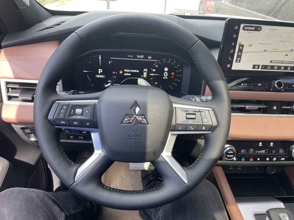 S-AWC pokročilý systém pohonu všetkých kolies s elektronickou voľbou režimov (4WD), Aktívna kontrola stáčania okolo zvislej osi (AYC), Systém sledovania mŕtveho uhla (BSW), Systém sledovania dopravnej situácie za vozidlom pri cúvaní (RCTA), Systém monitorovania a podpory udržiavania jazdného pruhu (LDW), Pokročilý systém pre aktívne udržiavanie v jazdnom pruhu Advanced Lane (LDP), Systém pre núdzové udržanie v jazdnom pruhu (ELKA), Asistent zmeny jazdného pruhu (LCA), Adaptívny tempomat (ACC), Systém rozpoznávania dopravných značiek upravujúcich rýchlosť (TSR) s inteligentným asistentom pre dodržanie povolenej rýchlosti, Antiblokovací brzdový systém (ABS), Elektronický systém rozdelenia brzdného účinku (EBD), Bezpečnostný systém prednostného brzdenia (BOS), Núdzový brzdový asistent (EBA), Systém signalizácie núdzového brzdenia (ESS), Systém aktívneho riadenia stability (ASC), Systém elektronického riadenia trakcie (TCL), Systém stabilizácie prívesu (TSA), Automatické rozsvätenie brzdových svetiel pri regeneratívnom brzdení, Systém pre analýzu pozornosti vodiča na základe štýlu jazdy (DAA), Systém na sledovanie pozornosti vodiča pomocou kamery (DMS), Systém predchádzania a zmierňovania následkov čelného nárazu s detekciou chodcov a cyklistov (FCM), Systém predchádzania a zmierňovania následkov nárazu pri cúvaní (RAEB), Asistent zmierňovania rizika kolízie pri odbočovaní na križovatkách, Tlačidlo pre núdzové privolanie pomoci (E-Call), Karoséria s vysokou odolnosťou proti nárazu s použitím prvkov z vysokopevnostnej ocele (RISE), Systém kontroly tlaku v pneumatikách (TPMS), Súprava na núdzovú opravu pneumatík, Čelné airbagy vodiča a spolujazdca (x2), spínač deaktivácie airbagu spolujazdca, Bočné airbagy vodiča a spolujazdca (x2), Hlavové (okenné) airbagy vpredu a vzadu (x2), Kolenný airbag vodiča, Stredový airbag medzi prednými sedadlami, 3bodový bezpečnostný pás ELR na predných sedadlách s predpínačom a obmedzovačom záťaže (x2), 3bodový bezpečnostný pás ELR na zadných sedadlách (x3) s predpínačom a obmedzovačom záťaže (x2), Výškovo nastaviteľné horné úchyty bezpečnostných pásov na predných sedadlách (x2), Upozornenie na nezapnuté bezpečnostné pásy na všetkých sedadlách, Detská poistka zámkov zadných dverí, Ukotvenie detskej bezpečnostnej sedačky ISOFIX (x2 na zadných sedadlách), Deaktivácia sťahovania zadných okien z miesta vodiča, Upozornenie na prítomnosť cestujúcich na zadných sedadlách, Plne digitálny prístrojový panel s 12,3" TFT displejom, Head Up Display (HUD) s projekciou na čelné sklo, Elektrická parkovacia brzda (EPB) s funkciou Auto Hold, Otočný ovládač jazdných režimov (7 režimov), Asistent rozjazdu do kopca (HSA), Asistent na schádzanie strmých kopcov (HDC), Dažďový senzor, Bezrámčekové digitálne vnútorné spätné zrkadlo s automatickým stmievaním s projekciou zo zadnej kamery, Senzor automatického rozsvätenia svetiel, Automatické diaľkové svetlá (AHB), Elektrický posilňovač riadenia (EPS) s variabilným účinkom, Multi Around Monitor 360° s projekciou na displeji audiosystému (kamera x4), Parkovacie senzory vpredu a vzadu (x8), Automatické uzamknutie dverí za jazdy, Alarm, Elektronický imobilizér, Audiosystém 12,3", navigácia, podpora bezdrôtového Android Auto™ a CarPlay®, Bluetooth®, autorádio AM/FM/DAB (SDA), Ovládanie niektorých funkcií vozidla prostredníctvom hlasových povelov, Podpora online Google služieb, Ozvučenie Dynamic Sound Yamaha Ultimate s 12 reproduktormi vrátane subwoofera a digitálneho zosilňovača, Dátový a nabíjací vstup USB-C na prednom paneli, 3A (x2), Nabíjací vstup USB-C v zadnej časti stredovej konzoly, 3A (x2), Komunikácia s vozidlom a ovládanie niektorých jeho funkcií prostredníctvom mobilnej aplikácie Mitsubishi Motors, Centrálne zamykanie dverí s diaľkovým ovládaním a dvoma ovládačmi, Inteligentný systém bezkľúčového ovládania centrálneho zamykania, Štartovanie / vypínanie motora tlačidlom, Ovládanie audiosystému na volante, Výškovo a pozdĺžne nastaviteľný volant, Elektrické ovládanie predných a zadných okien s funkciou AUTO a ochranou proti privretiu, Panoramatické elektricky ovládané strešné okno so slnečnou clonou, Slnečné clony na zadných oknách (sťahovacie roletky), Elektricky ovládané piate dvere (ovládanie pohybom chodidla pod zadným nárazníkom, nastaviteľná výška otvárania), Roletka batožinového priestoru, Bezdrôtové nabíjanie mobilného telefónu (15W), Elektrická zásuvka 12V (v prednej časti stredovej konzoly) (x1), Elektrická zásuvka 230 V / 1500 W (1x vzadu, 1x v batožinovom priestore), Programovateľný časovač nabíjania vozidla, Programovateľný časovač predohrevu / predvychladenie interiéru vozidla, Palubný počítač, ukazovateľ vonkajšej teploty, Trojzónová automatická klimatizácia s peľovým filtrom, Tepelné čerpadlo, Výdychy ventilácie pre zadných cestujúcich (pod prednými sedadlami a v zadnej časti stredového tunela), Pozdĺžne strešné lyžiny strieborné, Tónované sklá s filtrom UV žiarenia, predné sklo bezpečnostné vrstvené, zadné pevnostné temperované, Zatmavené zadné bočné sklá a zatmavené zadné sklo, Strešná anténa typu Shark fin, Predný a zadný nárazník vo farbe karosérie, Kľučky dverí vo farbe karosérie, Prostredný a zadný bočný dverový stĺpik v lesklo čiernej farbe, Spodná časť predného a zadného nárazníka vo farbe karosérie, Spodný kryt predného a zadného nárazníka titatovo sivý, Spodné lemy dverí vo farbe karosérie, Lemy bočných okien chrómované, Zadný strešný spojler, Plastové lemy blatníkov čierne, Dvojfarebné prevedenie karosérie s čiernou alebo striebornou strechou, Metalický lak, Predné adaptívne LED