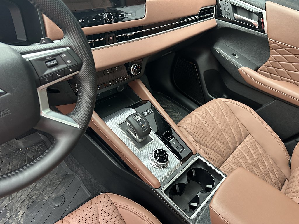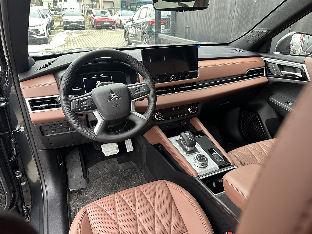 S-AWC pokročilý systém pohonu všetkých kolies s elektronickou voľbou režimov (4WD), Aktívna kontrola stáčania okolo zvislej osi (AYC), Systém sledovania mŕtveho uhla (BSW), Systém sledovania dopravnej situácie za vozidlom pri cúvaní (RCTA), Systém monitorovania a podpory udržiavania jazdného pruhu (LDW), Pokročilý systém pre aktívne udržiavanie v jazdnom pruhu Advanced Lane (LDP), Systém pre núdzové udržanie v jazdnom pruhu (ELKA), Asistent zmeny jazdného pruhu (LCA), Adaptívny tempomat (ACC), Systém rozpoznávania dopravných značiek upravujúcich rýchlosť (TSR) s inteligentným asistentom pre dodržanie povolenej rýchlosti, Antiblokovací brzdový systém (ABS), Elektronický systém rozdelenia brzdného účinku (EBD), Bezpečnostný systém prednostného brzdenia (BOS), Núdzový brzdový asistent (EBA), Systém signalizácie núdzového brzdenia (ESS), Systém aktívneho riadenia stability (ASC), Systém elektronického riadenia trakcie (TCL), Systém stabilizácie prívesu (TSA), Automatické rozsvätenie brzdových svetiel pri regeneratívnom brzdení, Systém pre analýzu pozornosti vodiča na základe štýlu jazdy (DAA), Systém na sledovanie pozornosti vodiča pomocou kamery (DMS), Systém predchádzania a zmierňovania následkov čelného nárazu s detekciou chodcov a cyklistov (FCM), Systém predchádzania a zmierňovania následkov nárazu pri cúvaní (RAEB), Asistent zmierňovania rizika kolízie pri odbočovaní na križovatkách, Tlačidlo pre núdzové privolanie pomoci (E-Call), Karoséria s vysokou odolnosťou proti nárazu s použitím prvkov z vysokopevnostnej ocele (RISE), Systém kontroly tlaku v pneumatikách (TPMS), Súprava na núdzovú opravu pneumatík, Čelné airbagy vodiča a spolujazdca (x2), spínač deaktivácie airbagu spolujazdca, Bočné airbagy vodiča a spolujazdca (x2), Hlavové (okenné) airbagy vpredu a vzadu (x2), Kolenný airbag vodiča, Stredový airbag medzi prednými sedadlami, 3bodový bezpečnostný pás ELR na predných sedadlách s predpínačom a obmedzovačom záťaže (x2), 3bodový bezpečnostný pás ELR na zadných sedadlách (x3) s predpínačom a obmedzovačom záťaže (x2), Výškovo nastaviteľné horné úchyty bezpečnostných pásov na predných sedadlách (x2), Upozornenie na nezapnuté bezpečnostné pásy na všetkých sedadlách, Detská poistka zámkov zadných dverí, Ukotvenie detskej bezpečnostnej sedačky ISOFIX (x2 na zadných sedadlách), Deaktivácia sťahovania zadných okien z miesta vodiča, Upozornenie na prítomnosť cestujúcich na zadných sedadlách, Plne digitálny prístrojový panel s 12,3" TFT displejom, Head Up Display (HUD) s projekciou na čelné sklo, Elektrická parkovacia brzda (EPB) s funkciou Auto Hold, Otočný ovládač jazdných režimov (7 režimov), Asistent rozjazdu do kopca (HSA), Asistent na schádzanie strmých kopcov (HDC), Dažďový senzor, Bezrámčekové digitálne vnútorné spätné zrkadlo s automatickým stmievaním s projekciou zo zadnej kamery, Senzor automatického rozsvätenia svetiel, Automatické diaľkové svetlá (AHB), Elektrický posilňovač riadenia (EPS) s variabilným účinkom, Multi Around Monitor 360° s projekciou na displeji audiosystému (kamera x4), Parkovacie senzory vpredu a vzadu (x8), Automatické uzamknutie dverí za jazdy, Alarm, Elektronický imobilizér, Audiosystém 12,3", navigácia, podpora bezdrôtového Android Auto™ a CarPlay®, Bluetooth®, autorádio AM/FM/DAB (SDA), Ovládanie niektorých funkcií vozidla prostredníctvom hlasových povelov, Podpora online Google služieb, Ozvučenie Dynamic Sound Yamaha Ultimate s 12 reproduktormi vrátane subwoofera a digitálneho zosilňovača, Dátový a nabíjací vstup USB-C na prednom paneli, 3A (x2), Nabíjací vstup USB-C v zadnej časti stredovej konzoly, 3A (x2), Komunikácia s vozidlom a ovládanie niektorých jeho funkcií prostredníctvom mobilnej aplikácie Mitsubishi Motors, Centrálne zamykanie dverí s diaľkovým ovládaním a dvoma ovládačmi, Inteligentný systém bezkľúčového ovládania centrálneho zamykania, Štartovanie / vypínanie motora tlačidlom, Ovládanie audiosystému na volante, Výškovo a pozdĺžne nastaviteľný volant, Elektrické ovládanie predných a zadných okien s funkciou AUTO a ochranou proti privretiu, Panoramatické elektricky ovládané strešné okno so slnečnou clonou, Slnečné clony na zadných oknách (sťahovacie roletky), Elektricky ovládané piate dvere (ovládanie pohybom chodidla pod zadným nárazníkom, nastaviteľná výška otvárania), Roletka batožinového priestoru, Bezdrôtové nabíjanie mobilného telefónu (15W), Elektrická zásuvka 12V (v prednej časti stredovej konzoly) (x1), Elektrická zásuvka 230 V / 1500 W (1x vzadu, 1x v batožinovom priestore), Programovateľný časovač nabíjania vozidla, Programovateľný časovač predohrevu / predvychladenie interiéru vozidla, Palubný počítač, ukazovateľ vonkajšej teploty, Trojzónová automatická klimatizácia s peľovým filtrom, Tepelné čerpadlo, Výdychy ventilácie pre zadných cestujúcich (pod prednými sedadlami a v zadnej časti stredového tunela), Pozdĺžne strešné lyžiny strieborné, Tónované sklá s filtrom UV žiarenia, predné sklo bezpečnostné vrstvené, zadné pevnostné temperované, Zatmavené zadné bočné sklá a zatmavené zadné sklo, Strešná anténa typu Shark fin, Predný a zadný nárazník vo farbe karosérie, Kľučky dverí vo farbe karosérie, Prostredný a zadný bočný dverový stĺpik v lesklo čiernej farbe, Spodná časť predného a zadného nárazníka vo farbe karosérie, Spodný kryt predného a zadného nárazníka titatovo sivý, Spodné lemy dverí vo farbe karosérie, Lemy bočných okien chrómované, Zadný strešný spojler, Plastové lemy blatníkov čierne, Dvojfarebné prevedenie karosérie s čiernou alebo striebornou strechou, Metalický lak, Predné adaptívne LED
